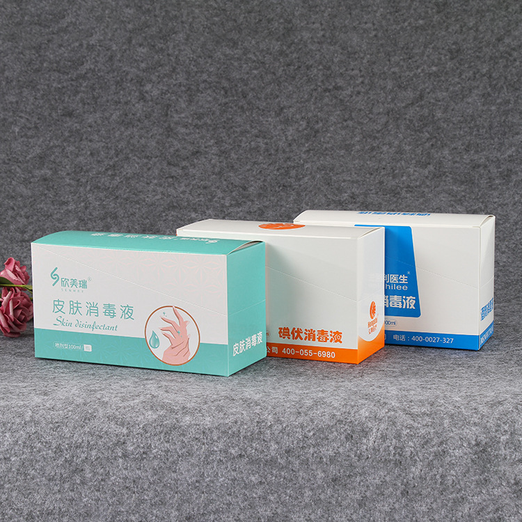 厂家定制皮肤消毒液包装纸盒 医用酒精消毒液保健品包装彩印logo