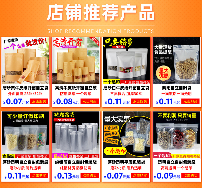 白色牛皮纸自封袋磨砂开窗牛皮纸袋红枣瓜子食品包装袋密封自立袋