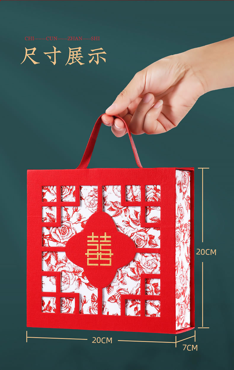 2022新款中式镂空喜糖盒婚庆礼品盒手提伴手礼回礼喜庆盒现货批发