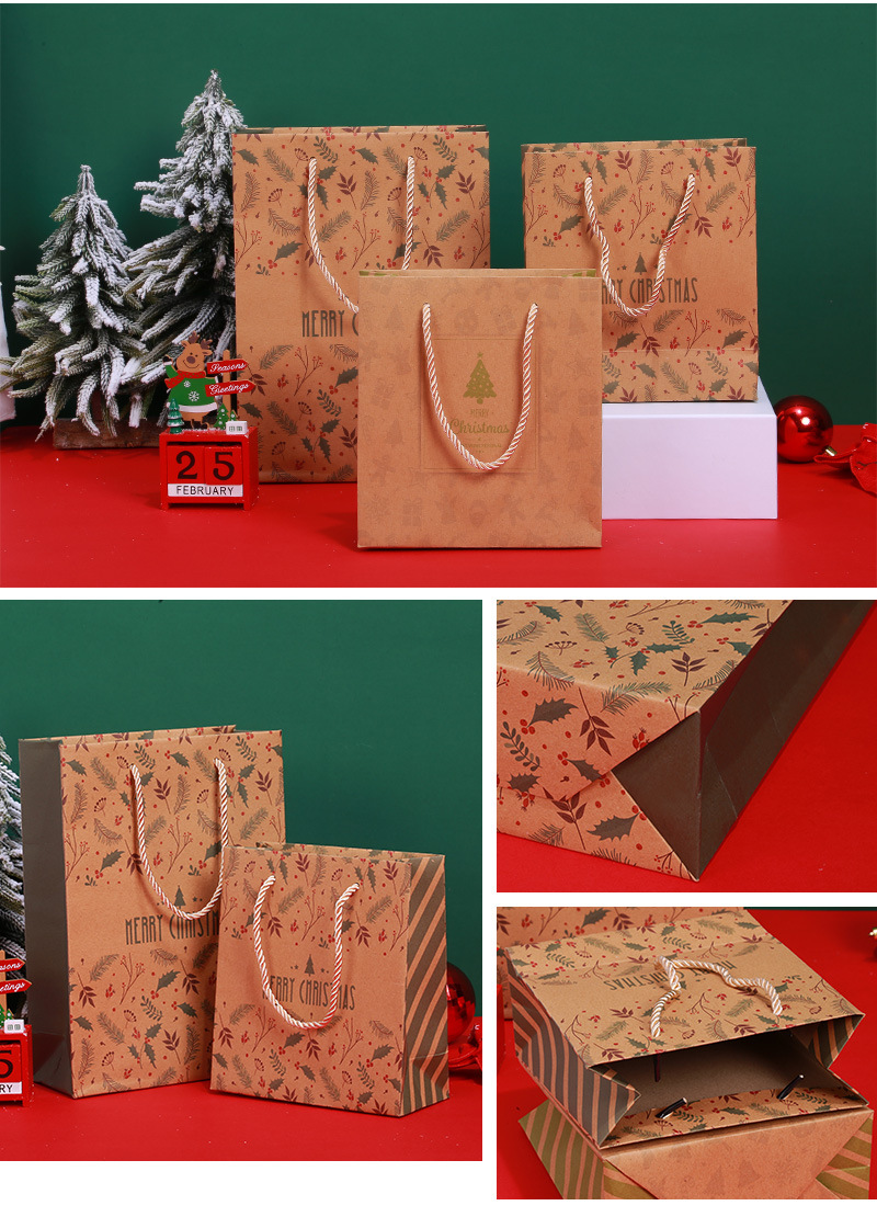 厂家定制圣诞节礼品袋衣服鞋子围巾牛皮纸礼袋圣诞手提礼品袋子