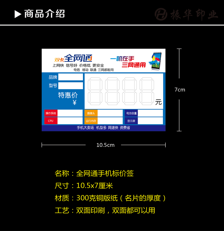 全网通手机标价签 电信天翼价格牌 三网通4G手机价格标签 200张