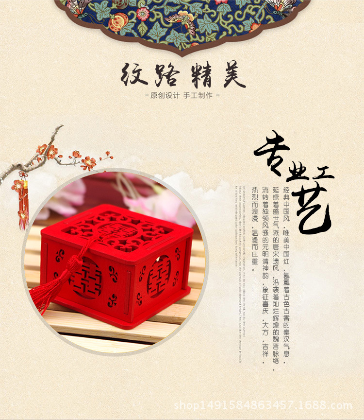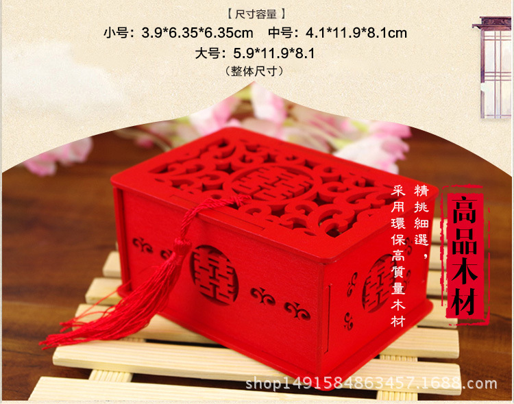 木制喜糖盒子创意结婚婚礼婚庆糖盒 木质糖盒礼品礼盒流苏喜糖盒
