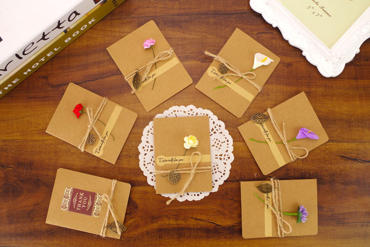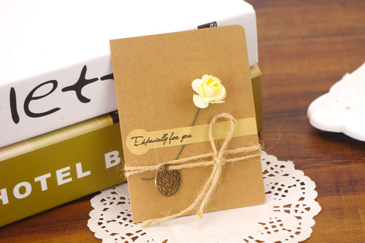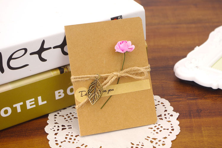 韩国创意文艺清新DIY复古牛皮纸手工干花贺卡玫瑰生日祝福卡片