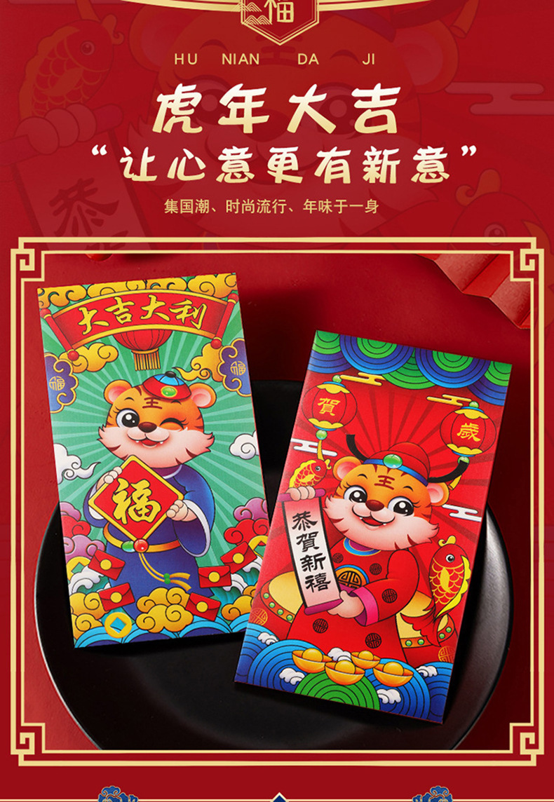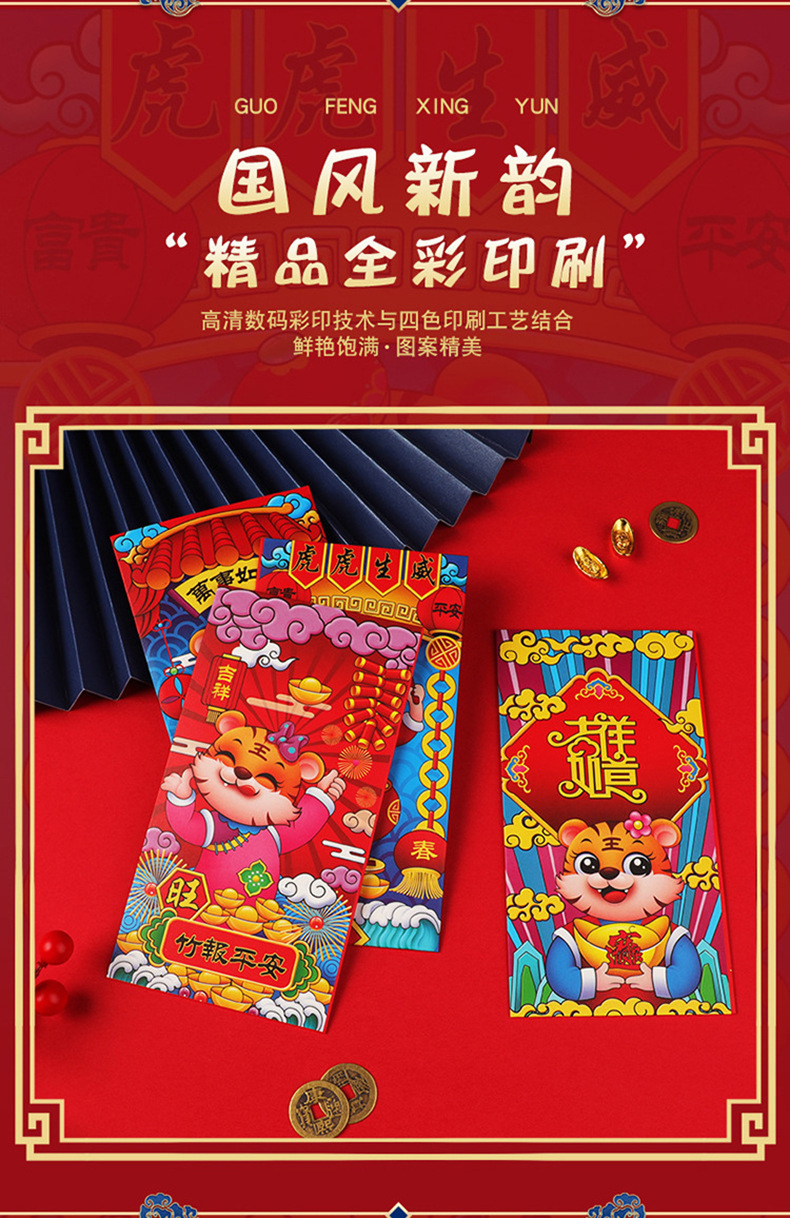 2022虎年新款国潮风个性创意千元红包通用利是封春节压岁钱