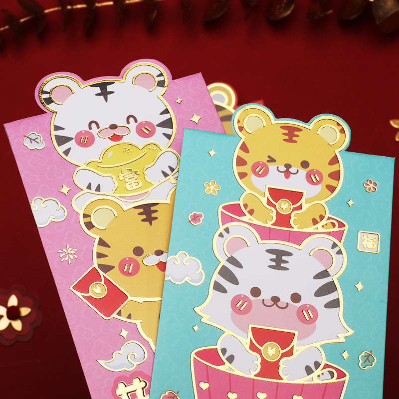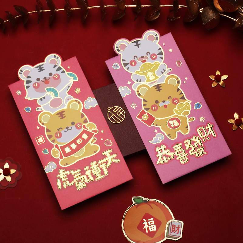 长款虎年新年贺岁利是封红包个性创意可爱卡通压岁包加印LOGO小号