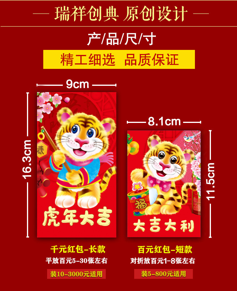 瑞祥卡通红包22虎年新款可爱个性创意新年红包利是封生肖红包彩包
