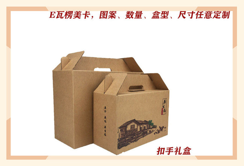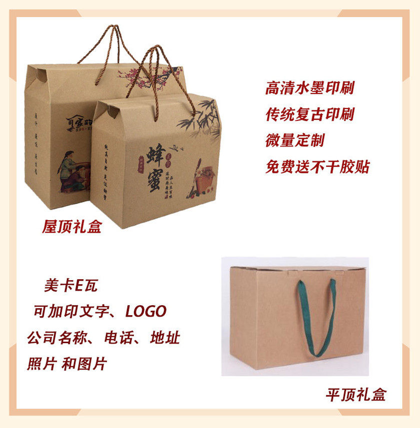 厂家直销牛皮纸礼品盒蜂食茶叶月饼干果特产复古风 手提盒可定制