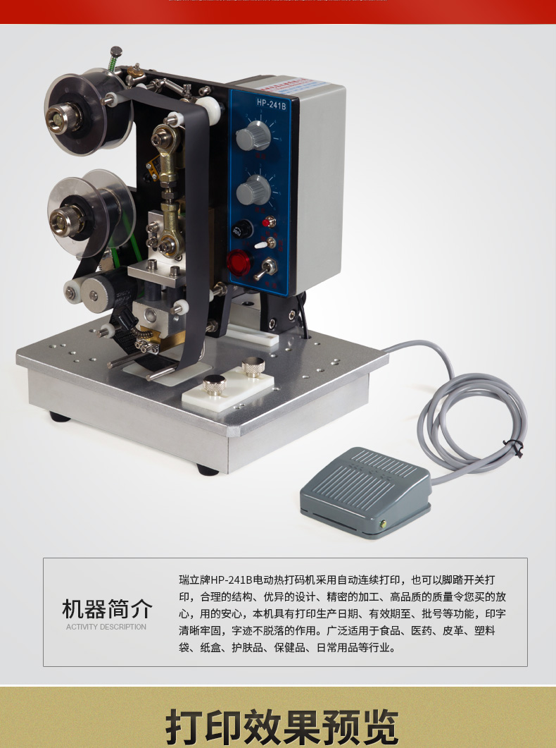 瑞立牌 HP-241B电动色带打码机 241打码机 自动打码机 日期印码机