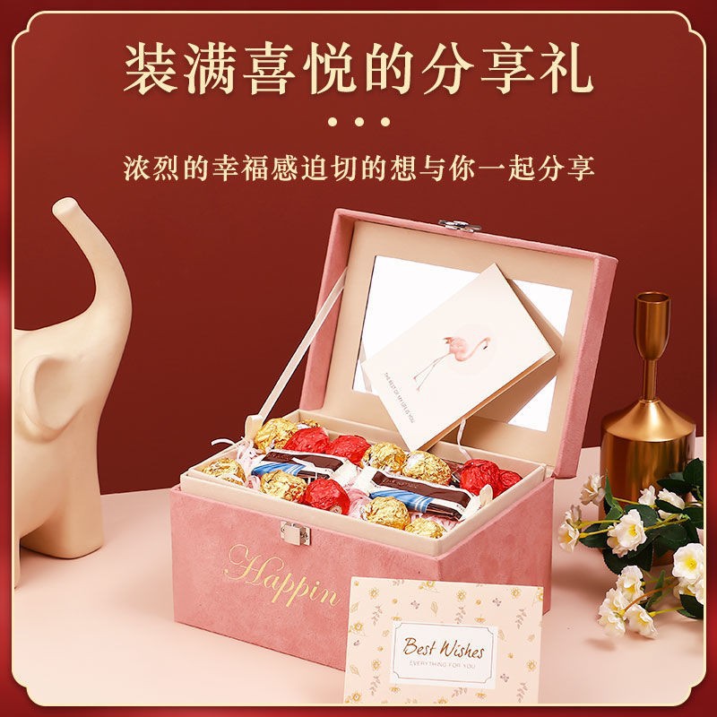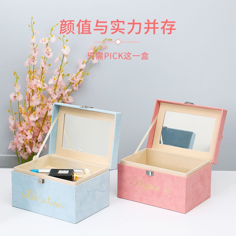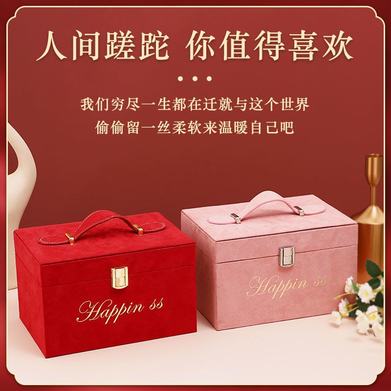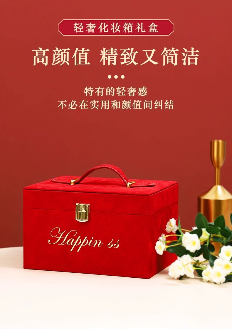 高档婚礼伴手礼盒绒布手提箱创意结婚伴娘化妆箱回礼礼品盒