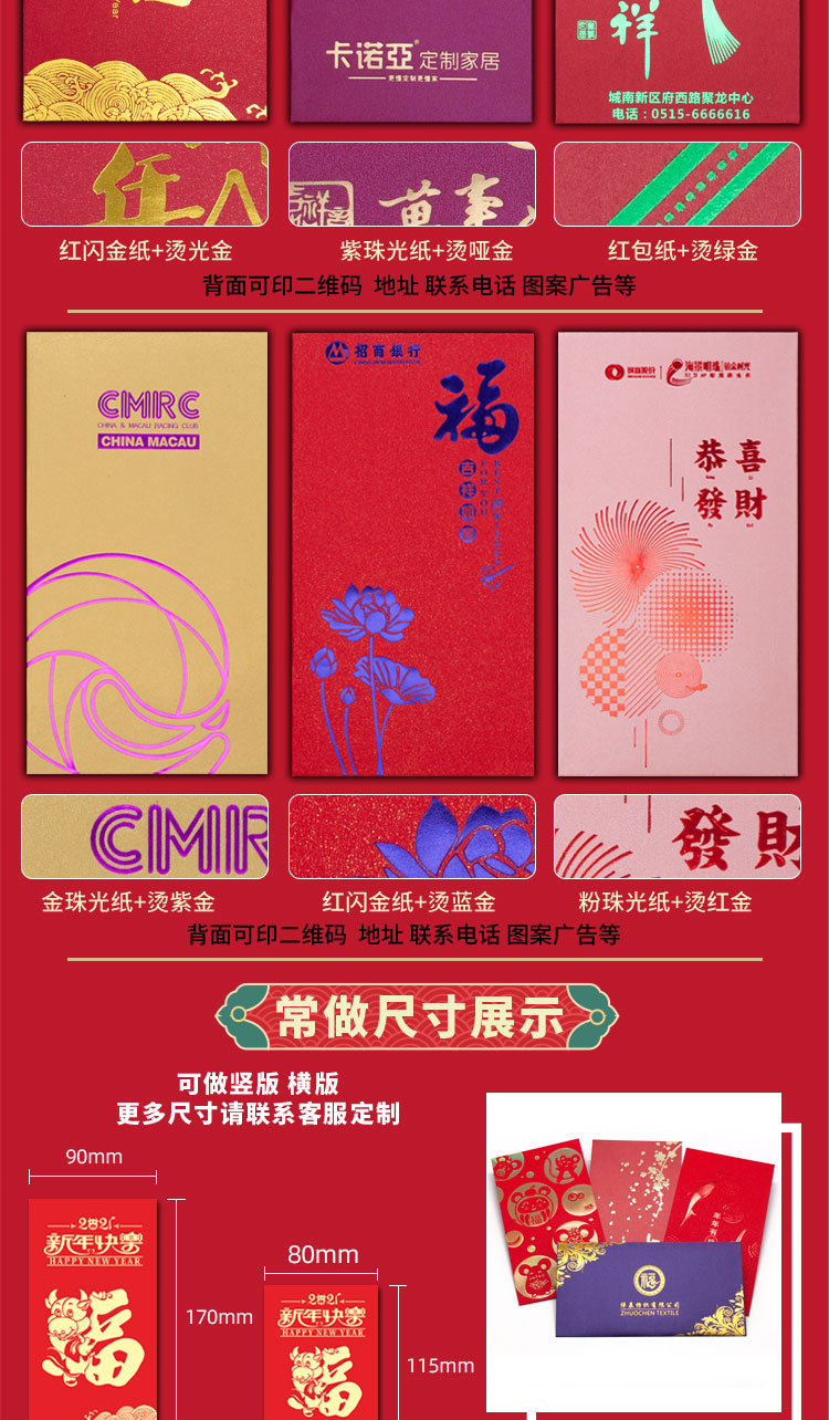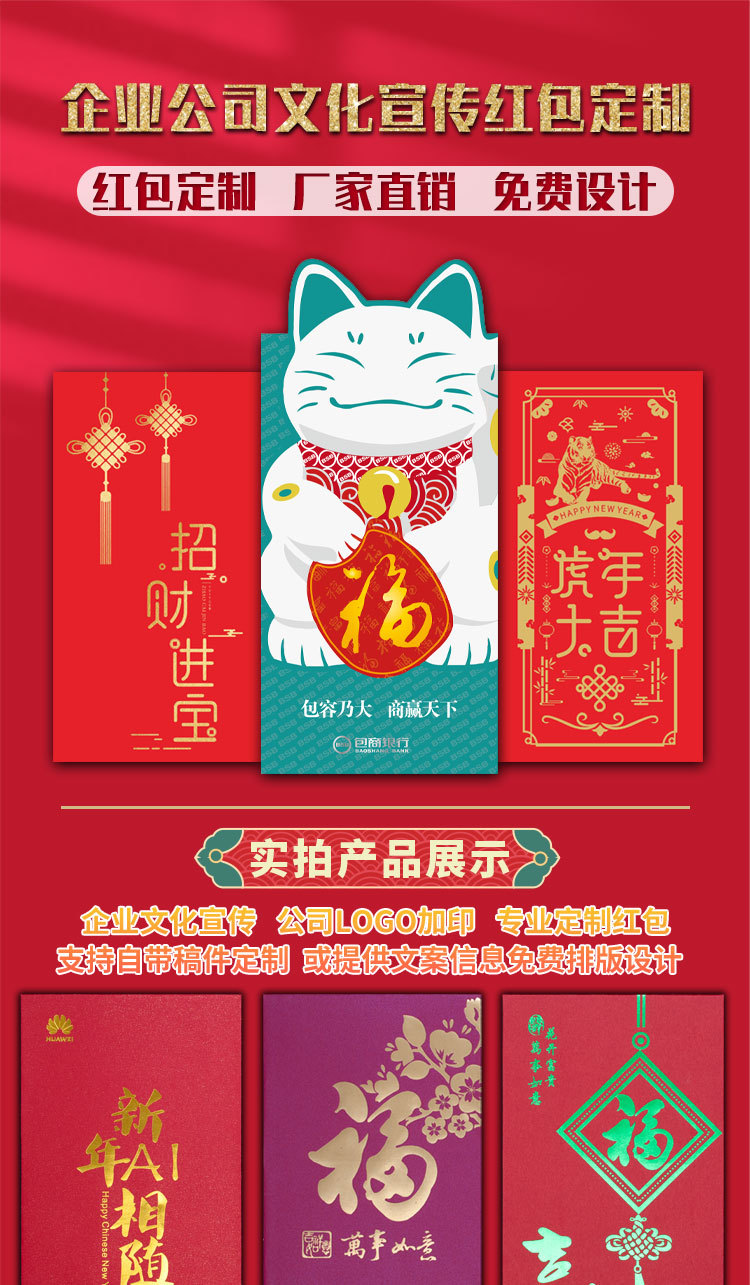 红包定制印logo专版新年利是封 商务广告个性创意烫金利是封定做