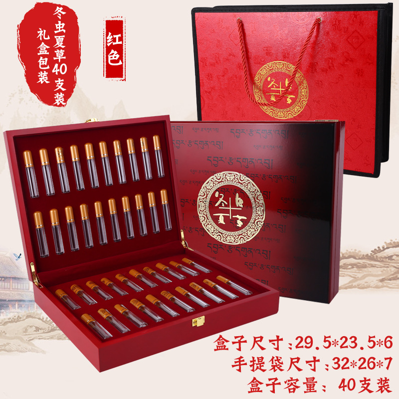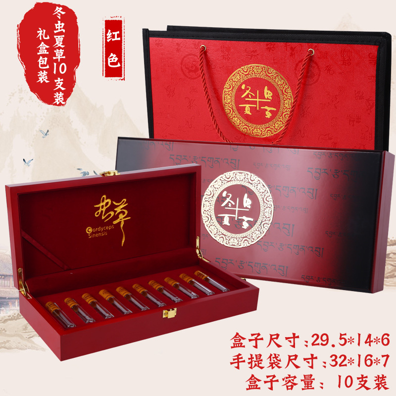 批发高档冬虫夏草虫草10支装茶药草茶叶实木质翻盖礼品包装盒定制