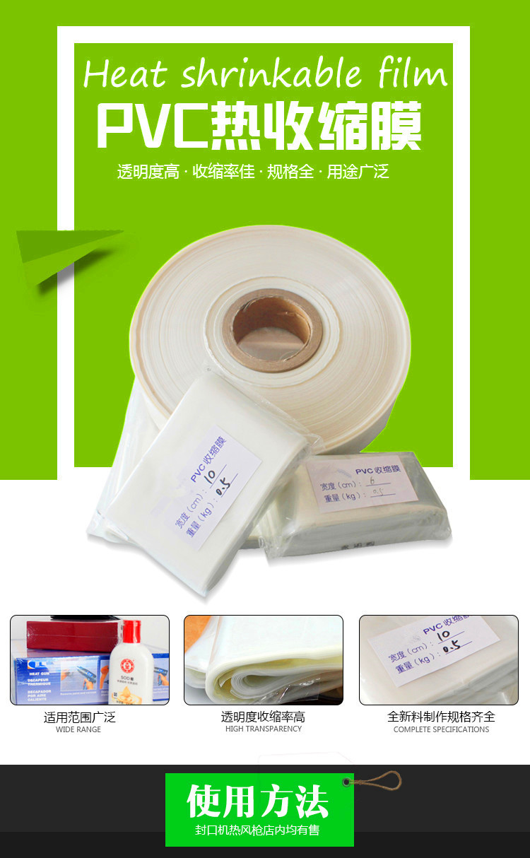 收缩膜热收缩膜5-12cm宽PVC热缩膜全新料筒膜塑封膜化妆品1公斤价