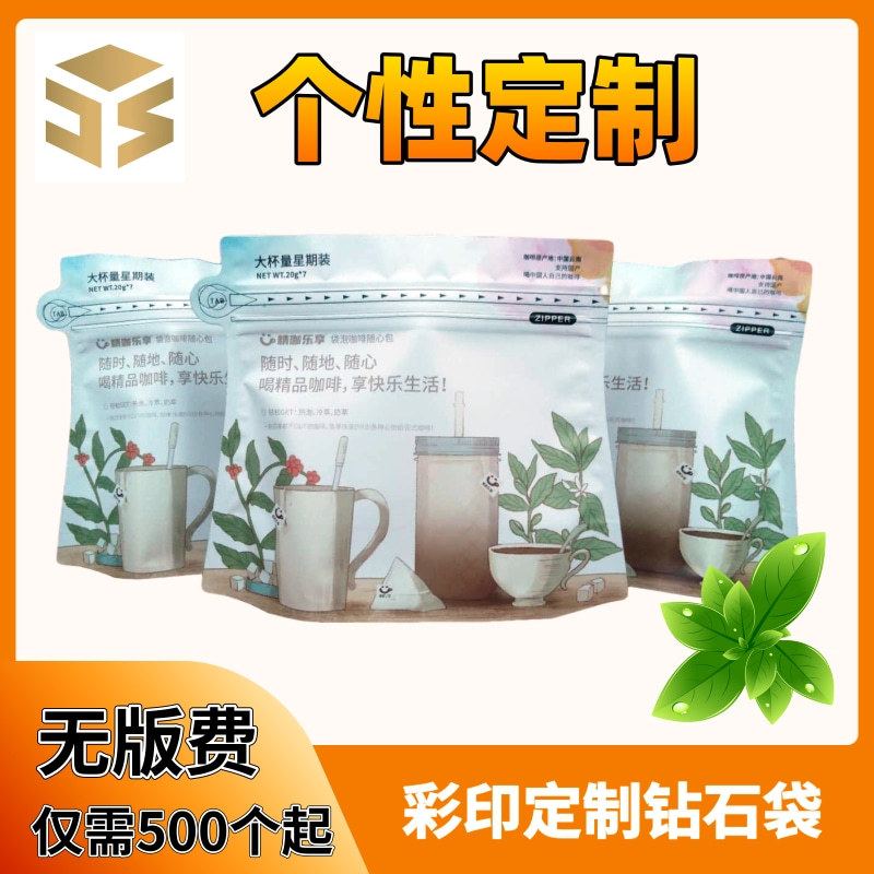 精之优小批量个性化定制钻石袋咖啡豆袋数码印刷无需版费不限颜色