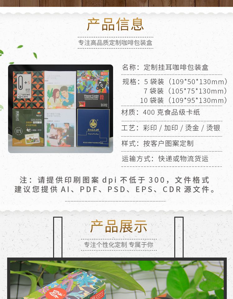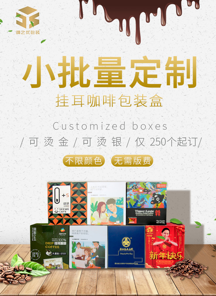 精之优挂耳咖啡盒小批量个性彩印定制5袋装7袋装通版尺寸彩印定制
