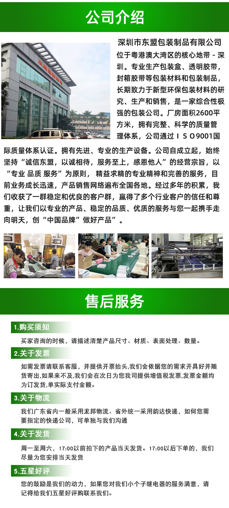 深圳市东盟包装制品有限公司,是一家集制版、印刷、表面处理、后道加工服务于一体的专业印刷公司,拥有100多位熟练的技术工人。工厂位于东莞市凤岗镇青塘路86号。 厂房面积26000平方米,拥有完整、科学的质量管理体系,通过ISO9001国际质量体系认证。公司拥有先进、专业的生产设备:日本小森对开五色全电脑酒精印刷机;德国高宝全开印刷机;德国海德堡CD四色四开印刷机;德国罗兰单色印刷机;新崎不干胶机。适合各种高品质的4色或5色包装制品印刷。后加工设备有:全自动UV上光机;折页机;HY复膜压痕机;PYQ对开压痕切线机;自动裱纸机;全自动糊盒机等。公司本着“至诚、至信、热忱”的服务理念,凭借科学的管理、先进的设备、精湛的技术、优质的服务,赢得了较高的市场知名度,多年来的不懈努力公司已拥有了一大批信誉好的优质客户。