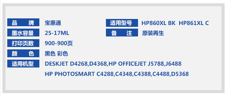 hp再生墨盒厂家惠普860 861彩色墨盒