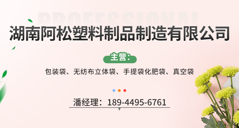 湖南阿松塑料制品制造有限公司专业生产大米编织袋、无纺布手提袋、食品包装袋等产品,本公司坚持“求真、务实.严谨、奉献”的经营方针,严格的质量保证体系,在新的世纪里,我们将遵循“创新、进取、严谨、务实”的宗旨和以“优良品质、精益求精”的锐意进取的企业精神,创良好的产品、良好的 服务,为您的企业腾飞添翼。 精心做好每件产品、良好的品质,良好的效率。 湖南阿松塑料制品制造有限公司将一种专业的态度、专业的精神、专业的做法,良好的信誉融入到服务的细节.使产品与服务的表里都越于尽善尽美,信誉、质量、严谨的服务一直是我们追求的目标.我们一直本着以质量求生存;以诚信赢未来的原则生产经营。期待您的到厂 参观和询价!