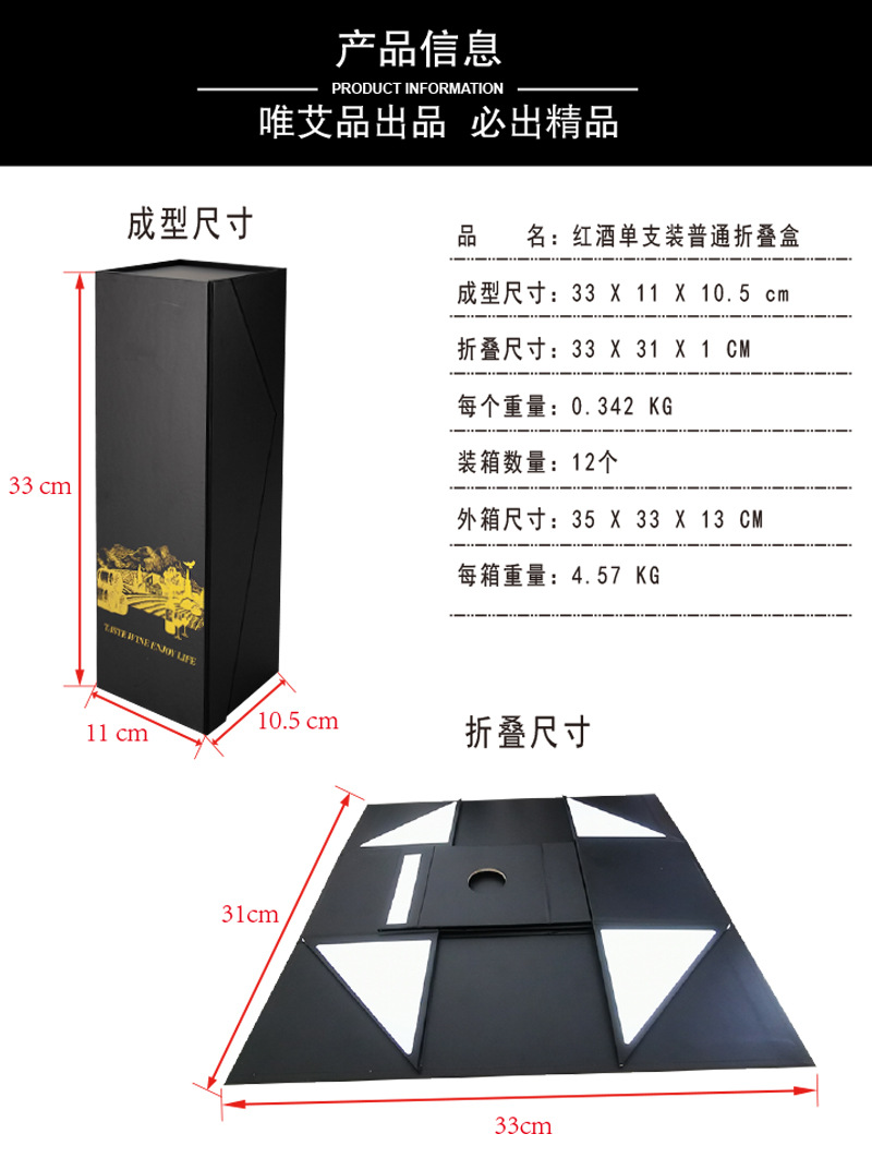 厂家现货 四角折叠酒盒 创意礼品包装红酒盒内衬盒子一体成型包装