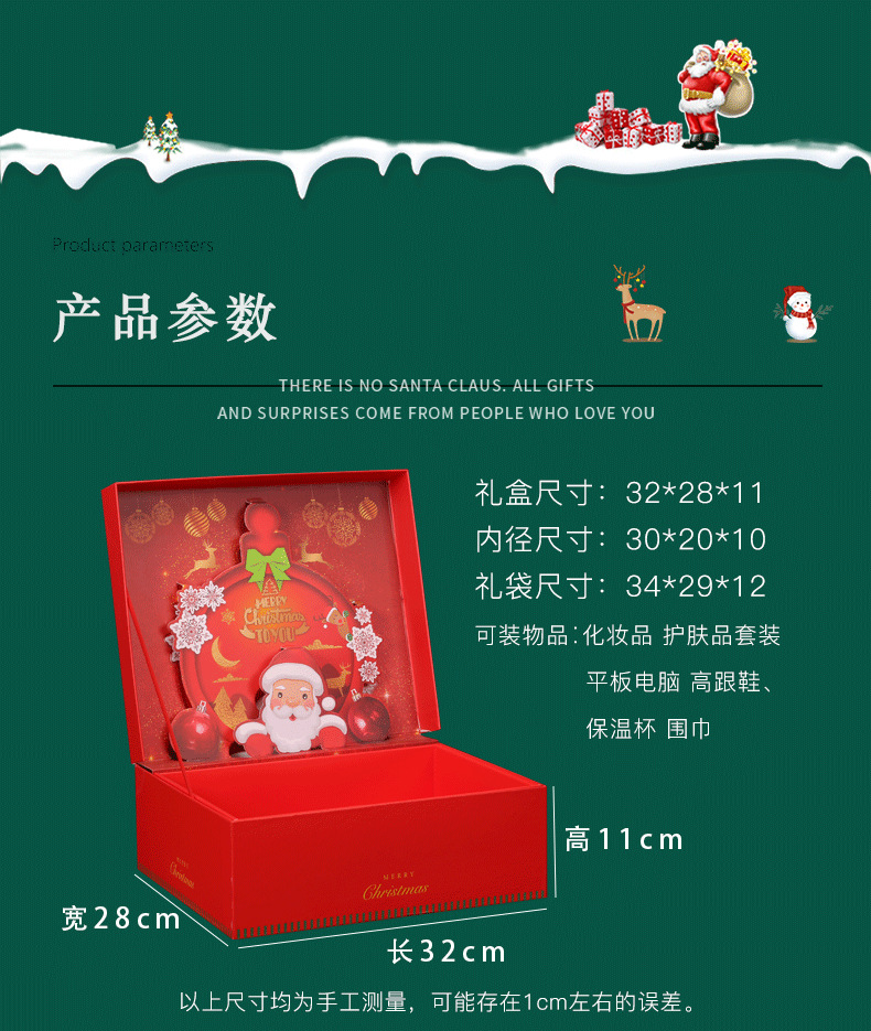 圣诞礼盒空盒礼品盒空盒子高档生日圣诞节礼物欧美大号硬盒定制