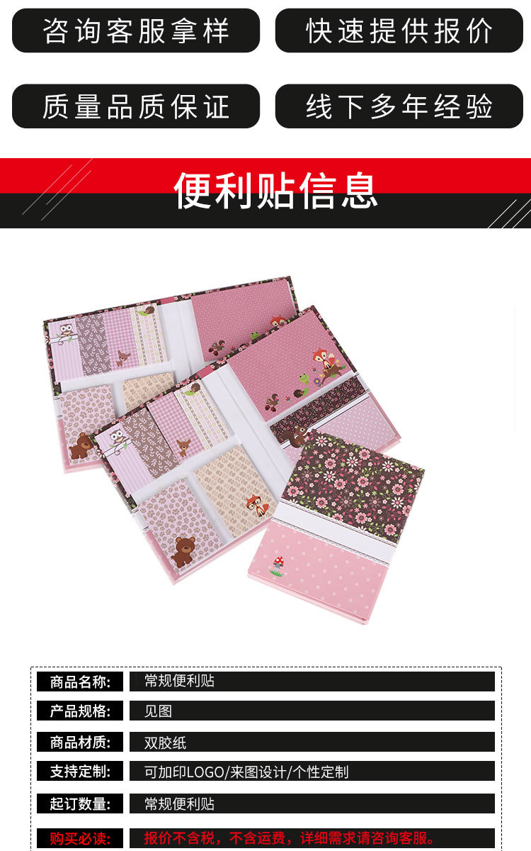 厂家定制便利贴烫金 卡通异形组合办公记事N次贴便签本定做广告