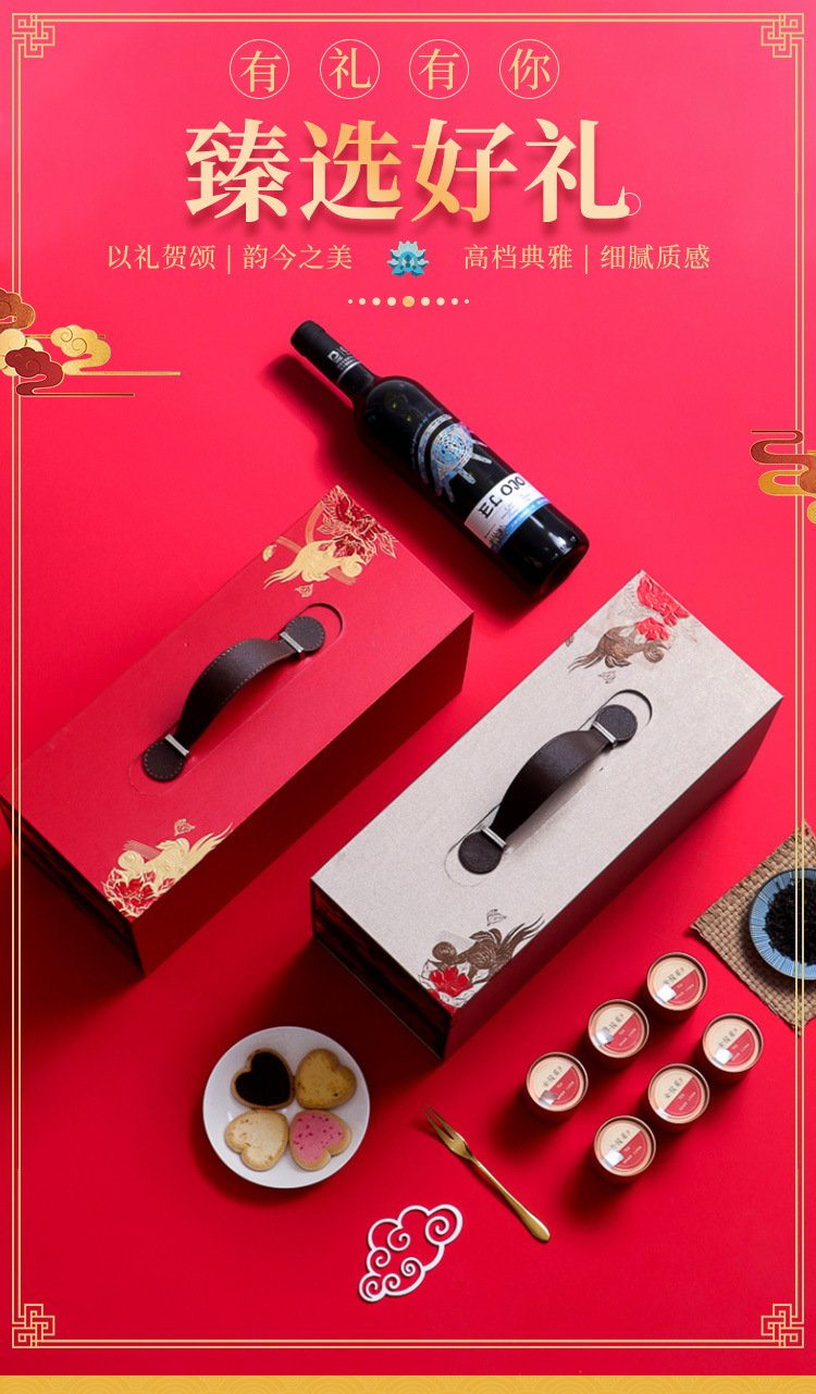 2021新款双层高档红酒盒茶叶葡萄酒包装盒铁观音小铁罐茶礼盒定制