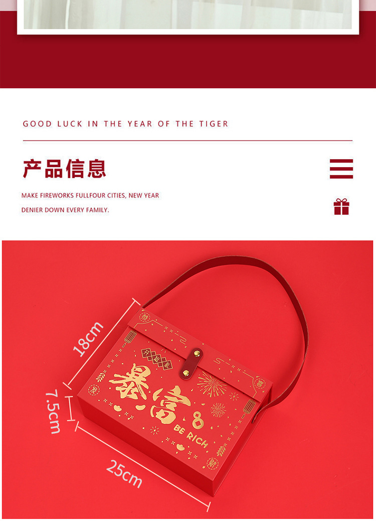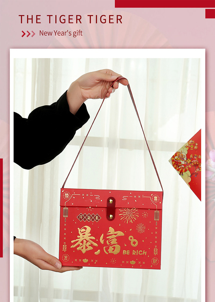 新年礼品盒春节年货红手提包装盒礼盒零食土特产干货糕点坚果包装