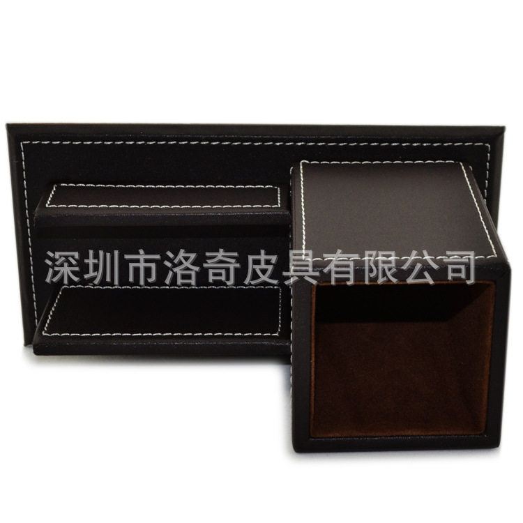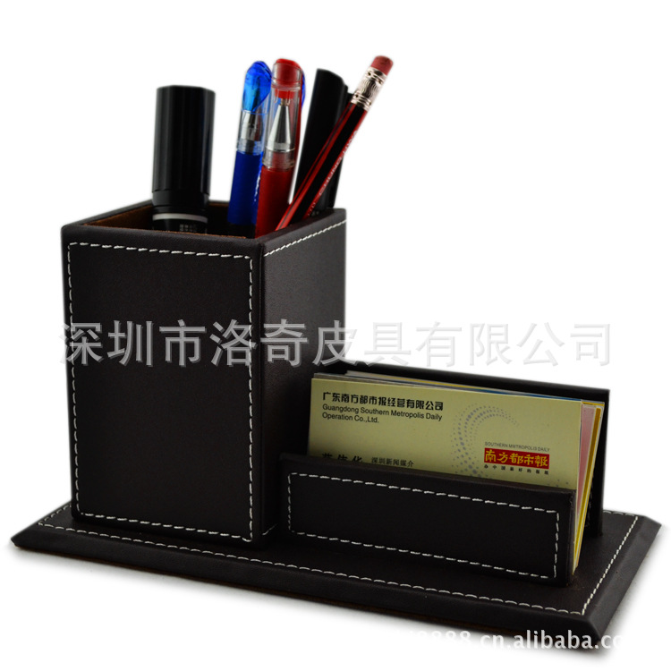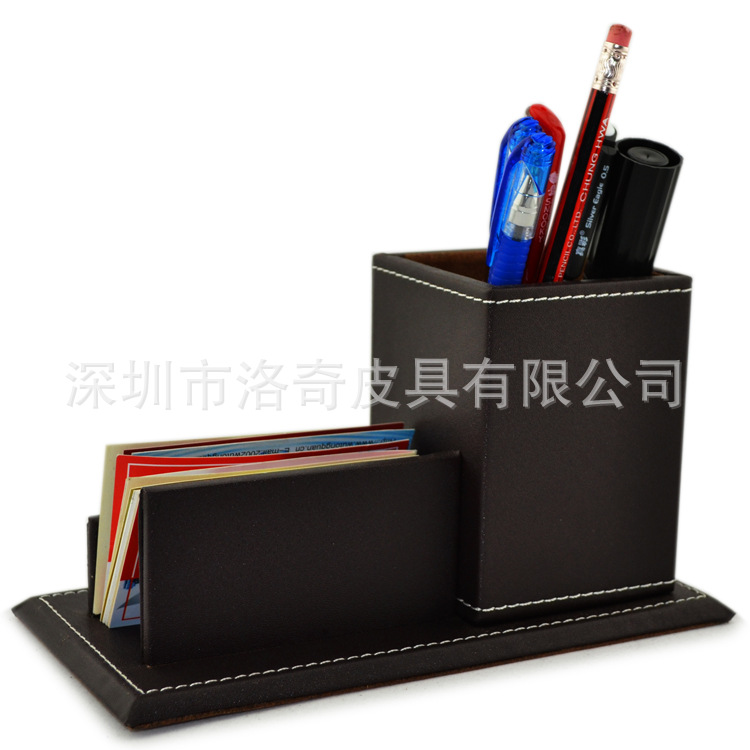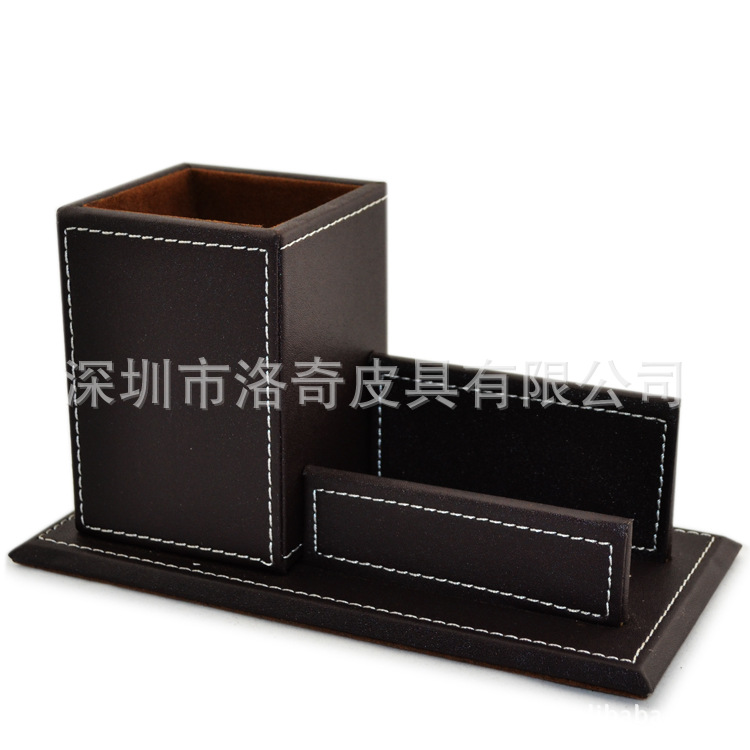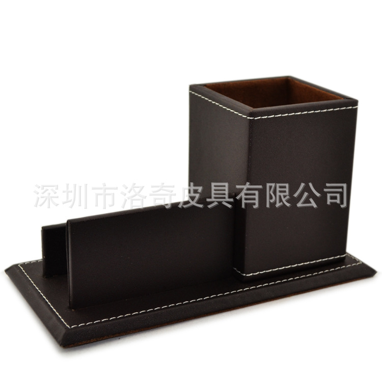 【产品名称】经典简约棕色仿牛皮笔筒名片座套装、办公收纳盒、整理收纳盒、笔筒名片多功能套装、两件套装