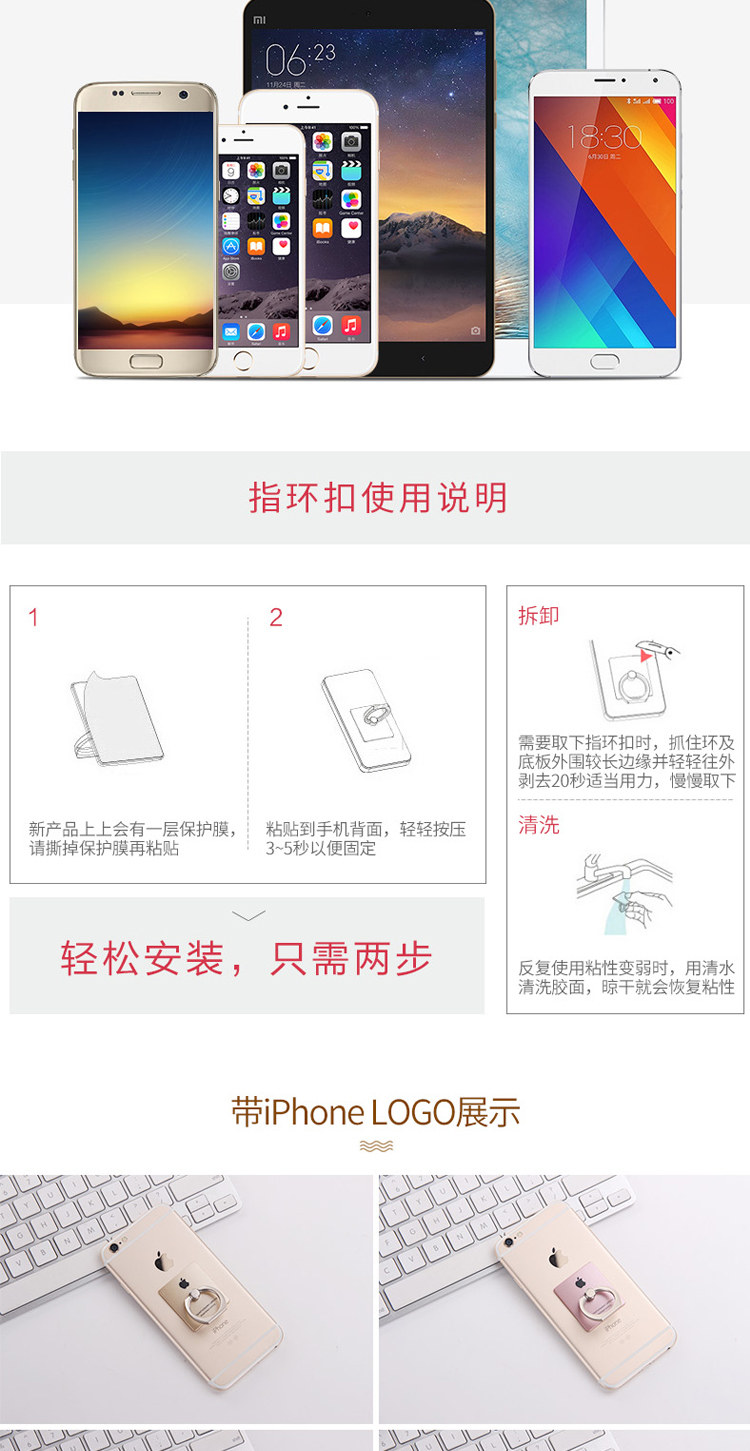 手机指环支架扣苹果7Plus卡扣粘贴式金属6s通用手指扣环6华为oppo