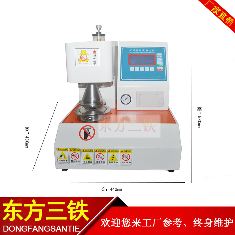 纸板耐破度仪 (也称破裂强度试验机)主要用于纸板、纸箱的耐破强度测试,同时也可用于铝箔、铜箔、薄膜、纤维、棉布等各种材料的耐破强度测试。仪器是按照国际通用型缪纶(Mullen)测试法设计,其各项性能参数和技术指标符合相关标准规定。