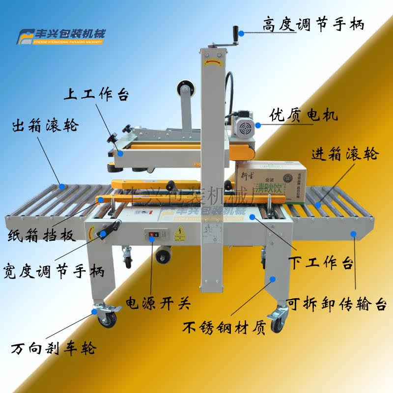 本机器是适用于家用电器、纺织、食品、日用百货、药品、轻工化工等各种行业产品纸箱的封箱包装,可以进行单机作业,也可与流水线配套使用。其特点:封箱机是采用贴胶带对纸箱封口,经济快速、操作容易、保养简单、任意调整不同大小的纸箱、纸箱包装后平整、规范、美观,同时完成封箱动作。如采用引资胶带封箱更能将产品装饰一新、别具一格。