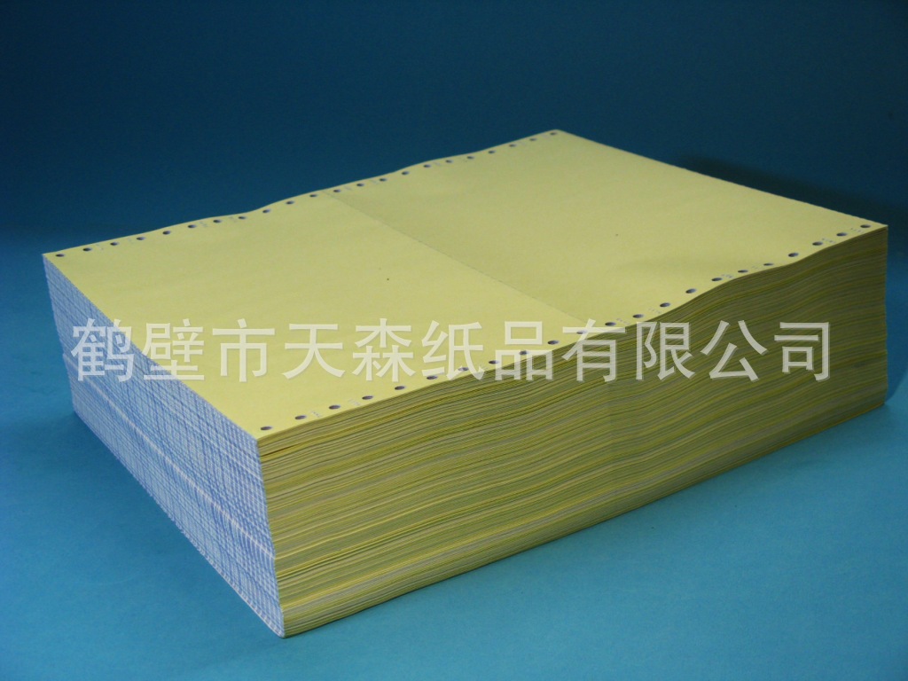 三、电脑打印纸:原纸白度和彩色饱和度好,纵向尺寸误差0.5mm,锁抓双齿不散页,断面切边整齐,显色清晰,适用行业广。常用规格有241、381、120、190(1-6层)等。