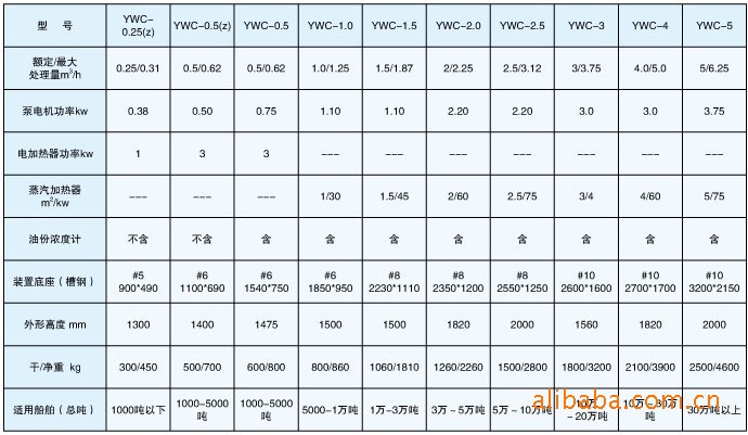 海事组织下属海上环境保护委员会于2003年7月18日通过了IMO.MEPC.107(49)决议案。该决议对《MARPOL 73/78 防污公约》附则I 有关15ppm船舶舱底水处理装置提出了全新的要求。为此而开发的本装置YWC正属于海上环境保护高端技术产品,可对船舶上的含各种燃料油、密度较高的残余渣油以及由氧化铁、表面活性剂等配置的乳化液混合物舱底水进行有效处理。该YWC型系列油污水处理装置共计十个规格型号**小的YWC-0.25(z)可以配置于1000吨以下的船舶**大的YWC-5可以配置于30万吨以上的大型船舶,整个系列图纸和装置均已通过中国船级社的型式认可试验,具体型号如下:YWC-0.25(z),YWC-0. 5(z),YWC-0. 5,YWC-1.0,YWC-1.5,YWC-2.0,YWC-2.5,YWC-3,YWC-4,YWC-5. 根据用户的需要,我们可设计生产特殊要求的油水分离装置。本装置除适用于船用舱底油污水处理外,还可用于工矿企业的油污水处理,其排放标准完全符合我国环保部门的有关要求。