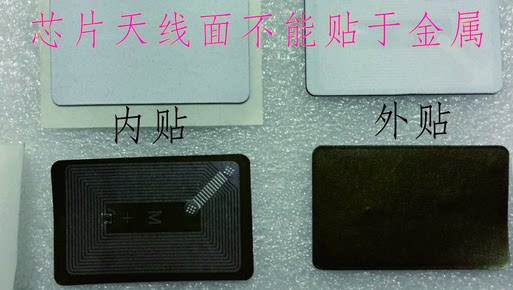 内贴是芯片面带胶,不能贴金属,贴于手机塑料壳内面