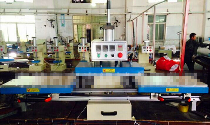 别名:服装T恤双面气动烫画机,下滑式三发热气动热转印机,上下发热双工位气动压烫机