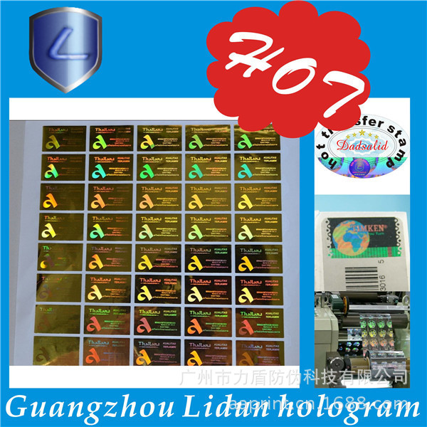 广州市力盾防伪科技有限公司成立于1998年,集研究、开发、应用和发展为一体的的高新技术企业。经营范围:数码防伪、激光防伪、加密防伪、激光微缩字、解码光刻激光标防伪、激光标打流水号、光刻水洗电化铝防伪、荧光防伪、光学变色防伪、变色龙、温变(摸变)防伪、滴水消失防伪、版纹变字防伪、易碎纸防伪标、烫金激光防伪刮开式、电化铝防伪膜、防伪纸张、水印防伪、纹理防伪、纸张穿线防伪定做、阴阳膜防伪、揭开(撕后)留字、核防伪、防伪票证、有价票证、无碳纸票据、磁票、不干胶、证照、单据等各类防伪。高难防伪我开发,凝难印刷我专业。固定电话查询、800免费电话查询、手机短信查询、网络查询由您指定。