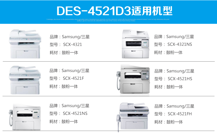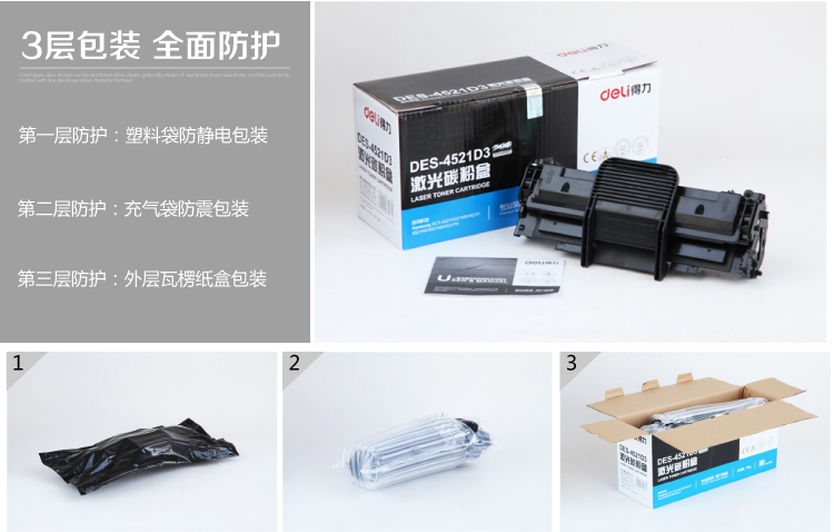 【产品型号:DES-4521D3】【底灰值:0】【黑度:1.40】【含粉量:110g】【打印页数(5%覆盖率):3000页】【产品尺寸:280*65*95mm】【净重:793g】 产品特色 Selling Point