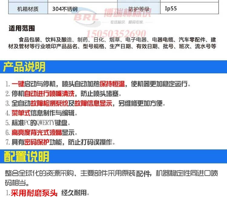 小字符喷码机,进口激光机,适用管材厂喷米标,商标,LOGO,图型,电线电缆喷米标厂名型号,白墨喷码机
