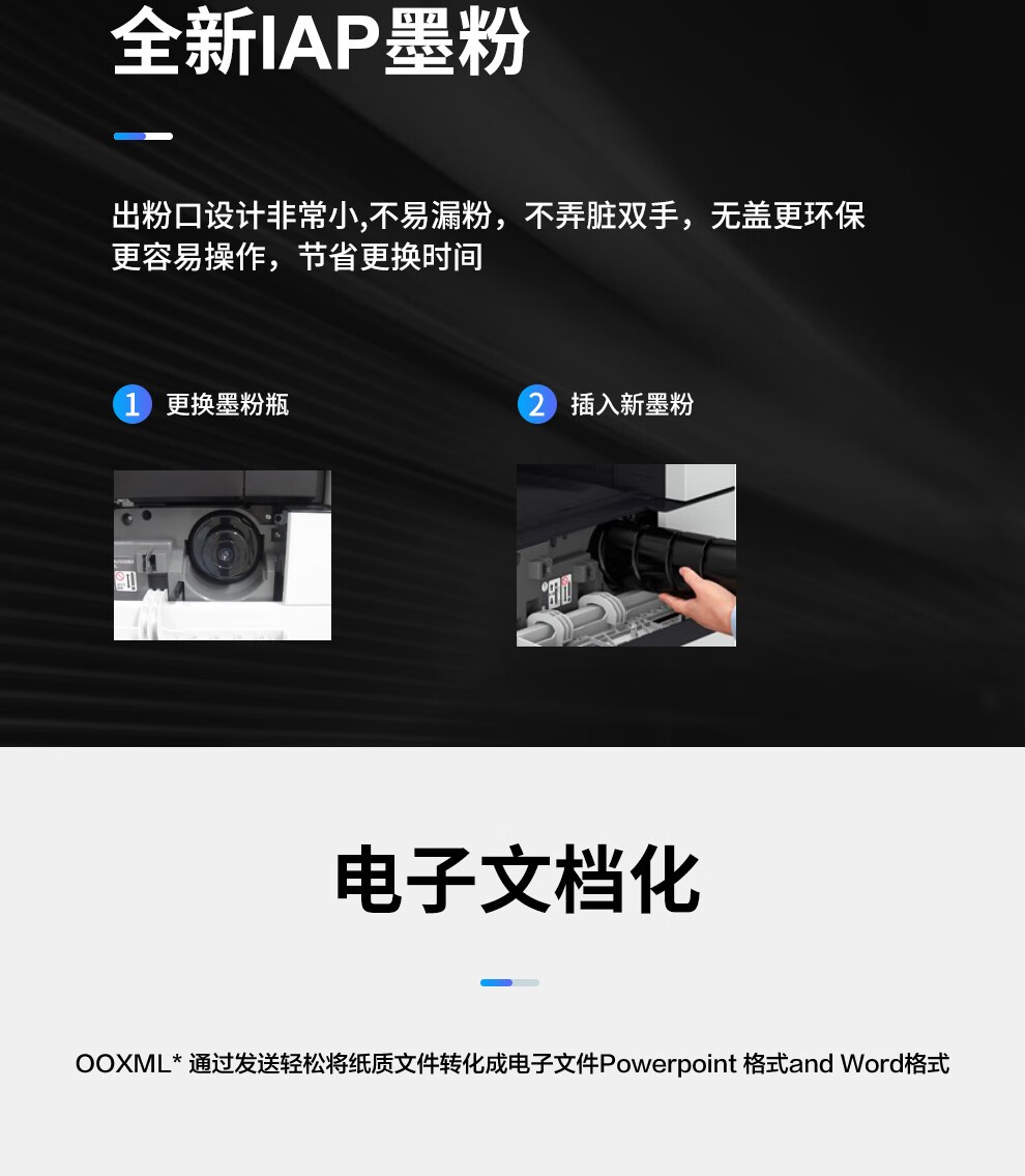 | 纸张容量 : | 标配纸盒:550页(2个)手送:100页 | 外形尺寸 : | 586*712.7*911.8mm |