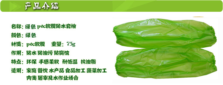 新款绿色防水套袖长款pvc软膜套袖防水食品厂套袖耐酸碱耐油套袖