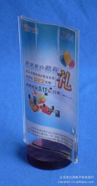亲,感谢您的光临,我们是义乌市以润展示器材厂,我厂位于国际**商贸城市--浙江省义乌市,专业生产加工各种压克力制品,包括压克力展示架、压克力桌牌 台签、压克力食品陈列架、展示盒、压克力包装盒以及其他亚克力工艺品。我们秉承一丝不苟,全力以赴,高质高效,薄利双赢的服务理念,热忱为您提供**、舒 心的合作历程,我们相信,以我们的真诚,一定能得到您更进一步的信任,同时,我们将竭尽全力开发创新,只为您的产品销售从众多产品竞争中脱颖而出!
